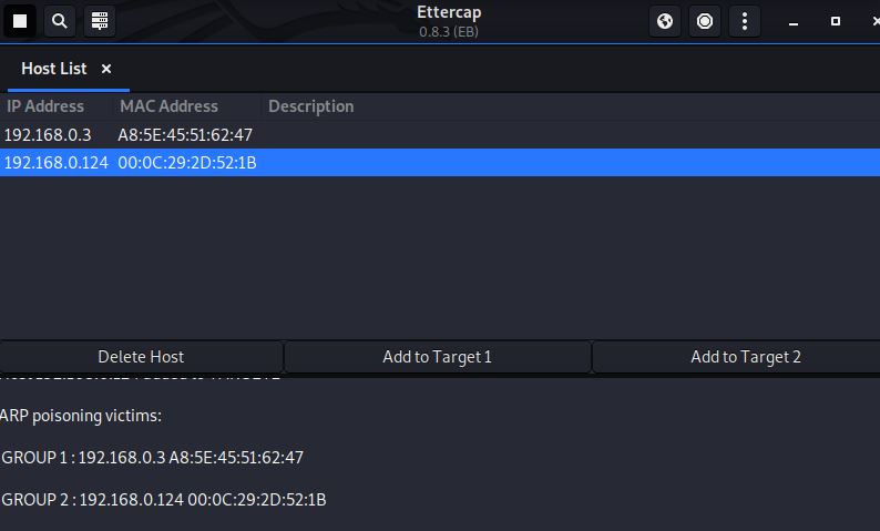 칼리리눅스의 'ettercap' 라는 중간자 공격(MITM) 툴을 사용해서 호스트 A, B를 속일수 있습니다.