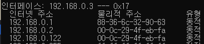 | 희생자 | 윈도우A(192.168.0.124, 00:0c:29:2d:52:1b) 윈도우B(192.168.0.3, a8:5e:45:51:62:47) |