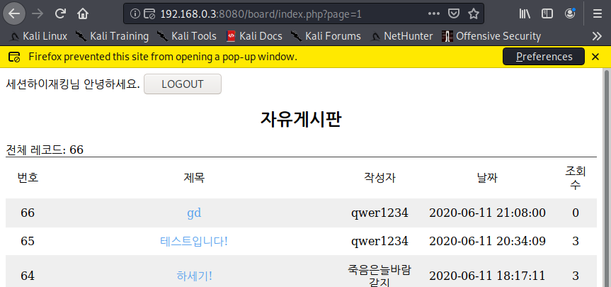공격자 | 칼리리눅스(192.168.0.122, 00:0c:29:4f:eb:fa) |
