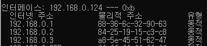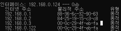 희생자 | 윈도우A(192.168.0.124, 00:0c:29:2d:52:1b) 윈도우B(192.168.0.3, a8:5e:45:51:62:47) |